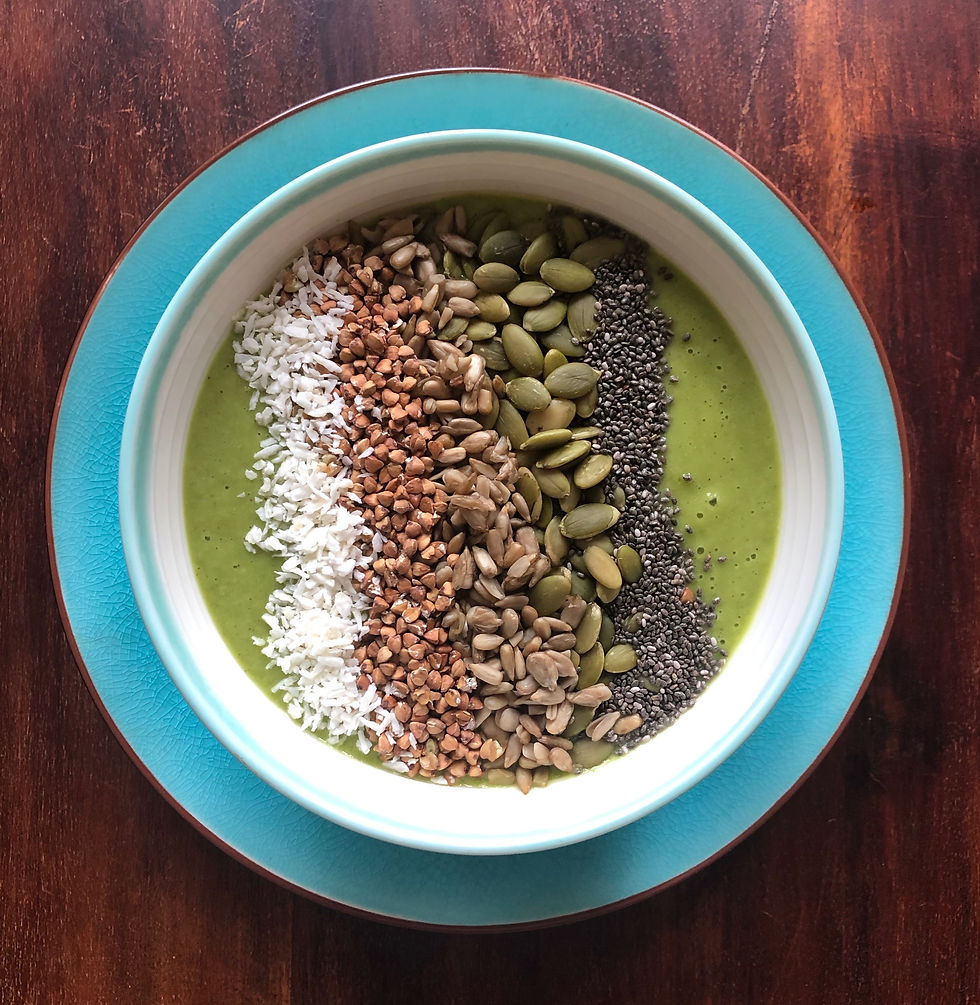 | I knew that I was going to have a hard training session in the gym yesterday so decided to up the carbohydrates and nutrients I put in my smoothie to see how I got on. This green little beauty contains: